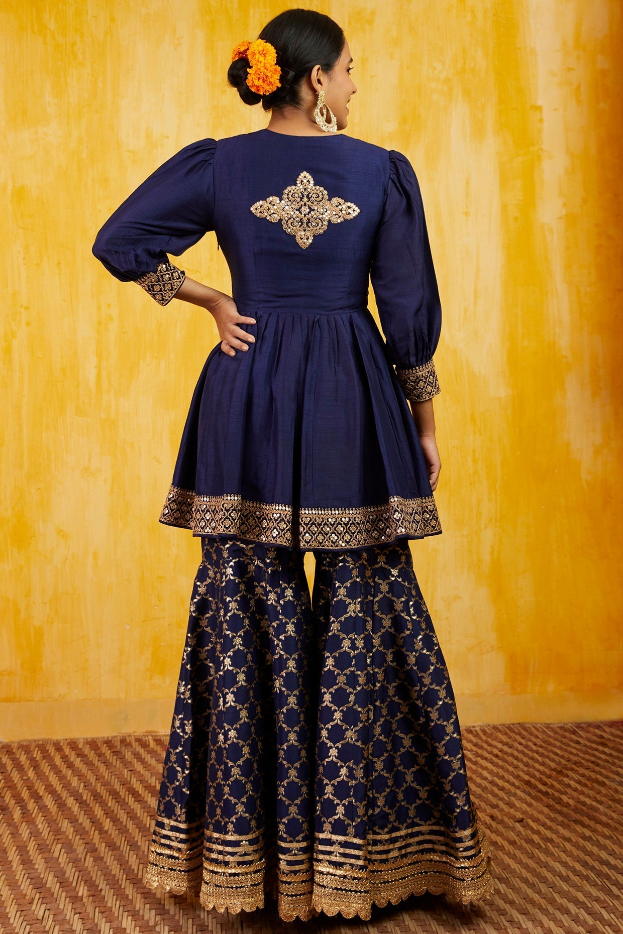 - Composition: Peplum Top- Tussar, Sharara- Brocade