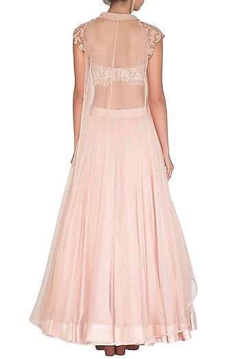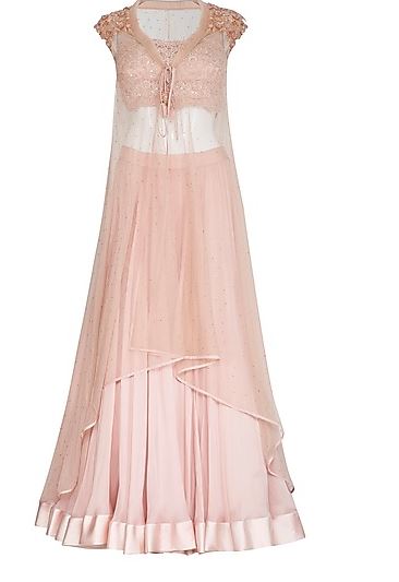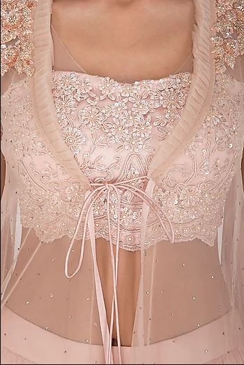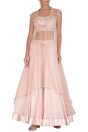 MOUVE EMBROIDERED CROPTOP WITH FLATCHIFFONPLEATED SKRIT AND EMBROIDERED NET JACKET SET.