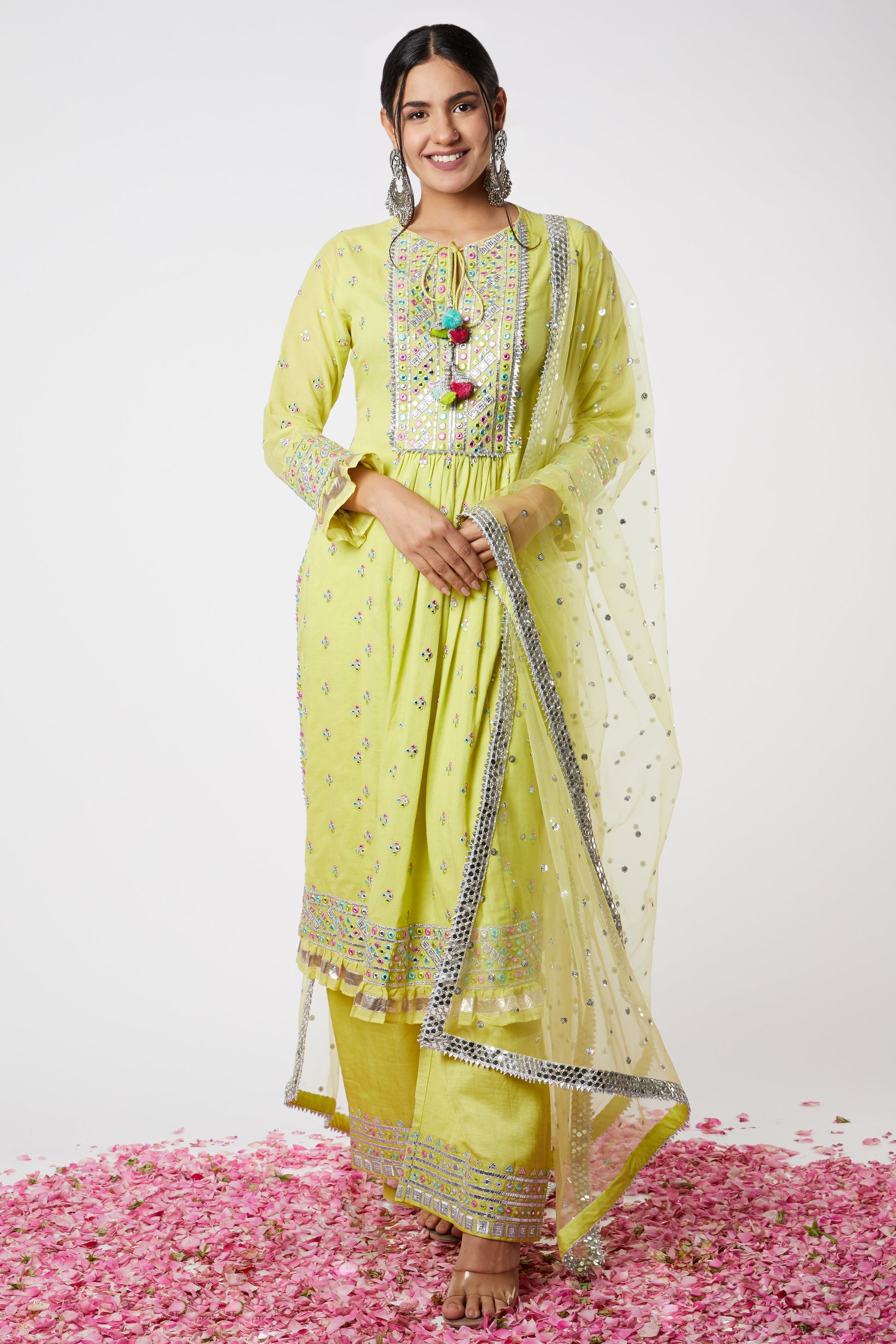 - Fabric Composition:Tunic - Cotton Palazzo - Cotton Dupatta - Net
