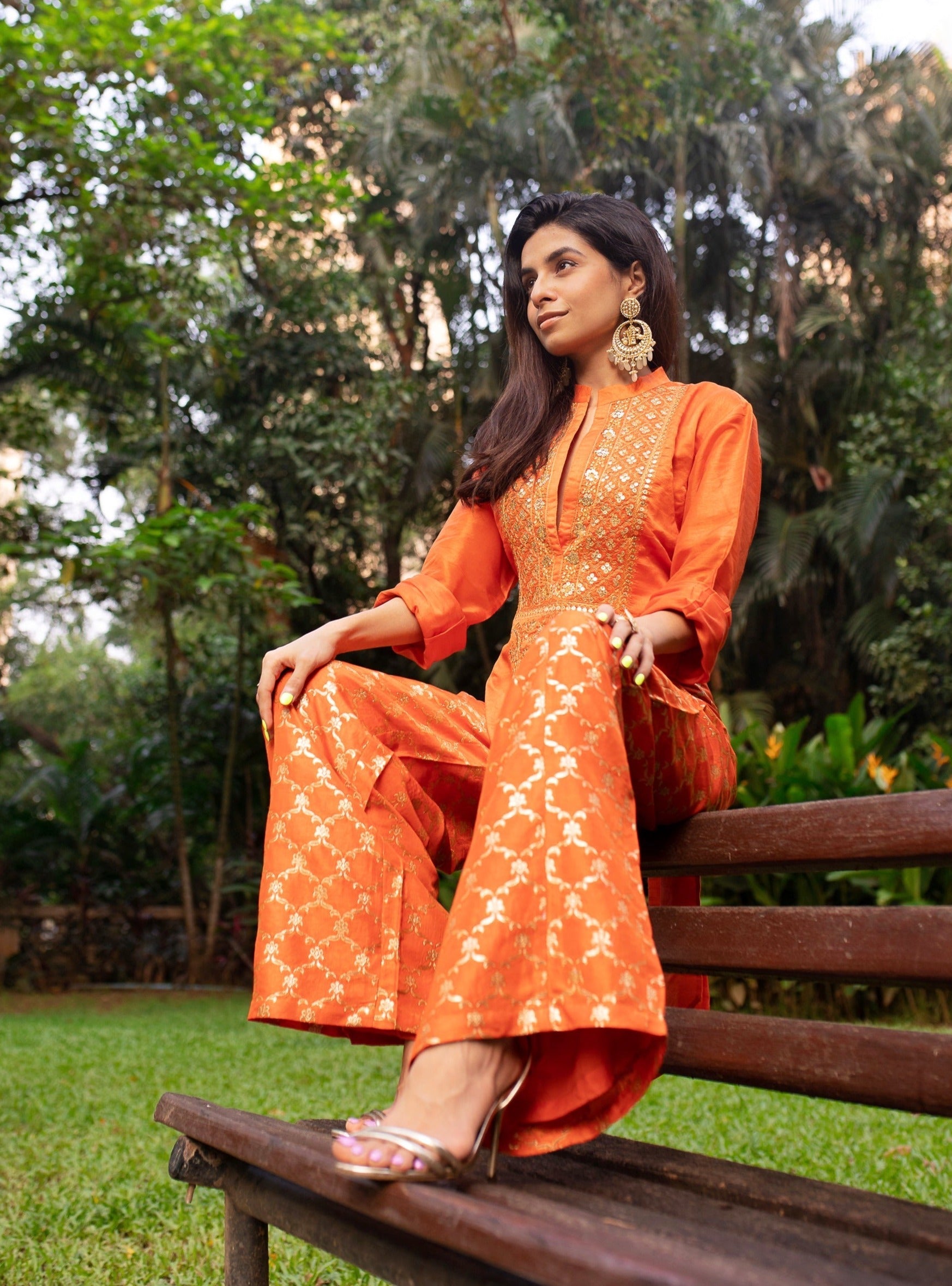 Prerna Mehra In Marigold Brocade Shirt Pant Set