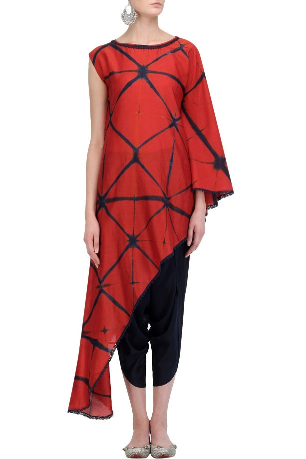 Red & Blue Shibori Shirt With Blue Dhoti