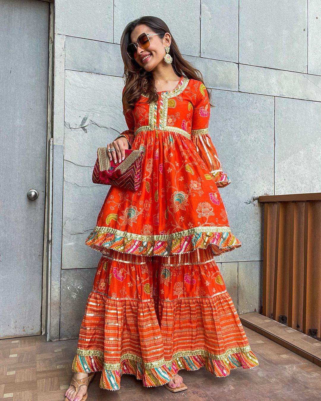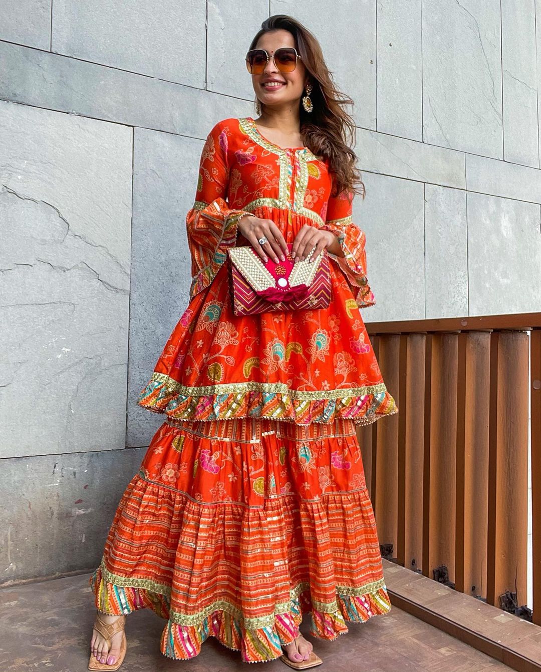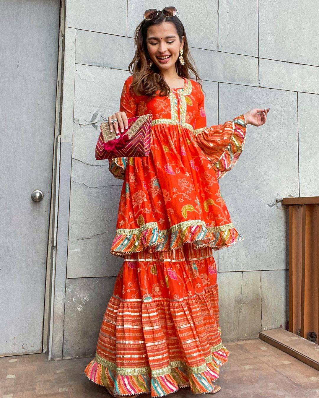 Saachi Bhasin In Marigold Garden Peplum Sharara Set