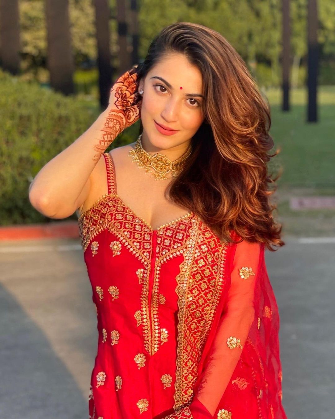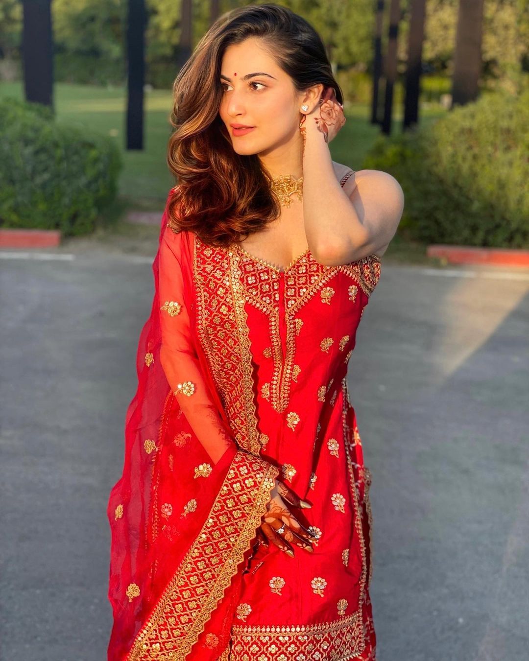 Shivaleeka Oberoi in Marigold Brocade Strappy Set