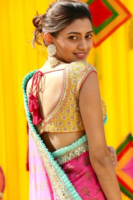 Shreya Shankar in Marigold Buti Ruffle Saree